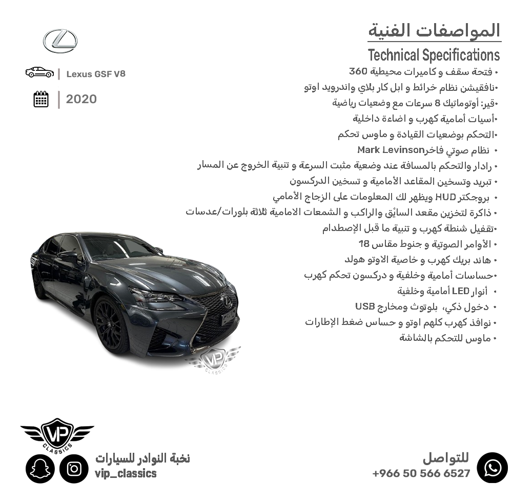 المواصفات: فتحة سقف، كاميرات محيطية 360، نظام صوتي من MarkLevinson، نافقيشن نظام خرائط، ابل كار بلاي واندرويد اوتو، أسيات أمامية كهرب، اضاءة داخلية ، التحكم بوضعيات القيادة، ماوس تحكم، رادار والتحكم بالمسافة عند وضعية مثبت السرعة، تنبية الخروج عن المسار، تبريد وتسخين المقاعد الأمامية، تسخين الدركسون، بروجكتر HUD ويظهر لك المعلومات على الزجاج الأمامي، ذاكرة لتخزين مقعد السائق والراكب، الشمعات الامامية ثلاثة بلورات/عدسات، تقفيل شنطة كهرب، تنبية ما قبل الإصطدام،  الأوامر الصوتية، جنوط مقاس 18، هاند بريك كهرب، خاصية الاوتو هولد، حساسات أمامية وخلفية، دركسون تحكم كهرب، أنوار LED أمامية وخلفية، دخول ذكي،  بلوتوث ومخارج USB، نوافذ كهرب كلهم اوتو، حساس ضغط الإطارات، ماوس للتحكم بالشاشة...إلخ ✅