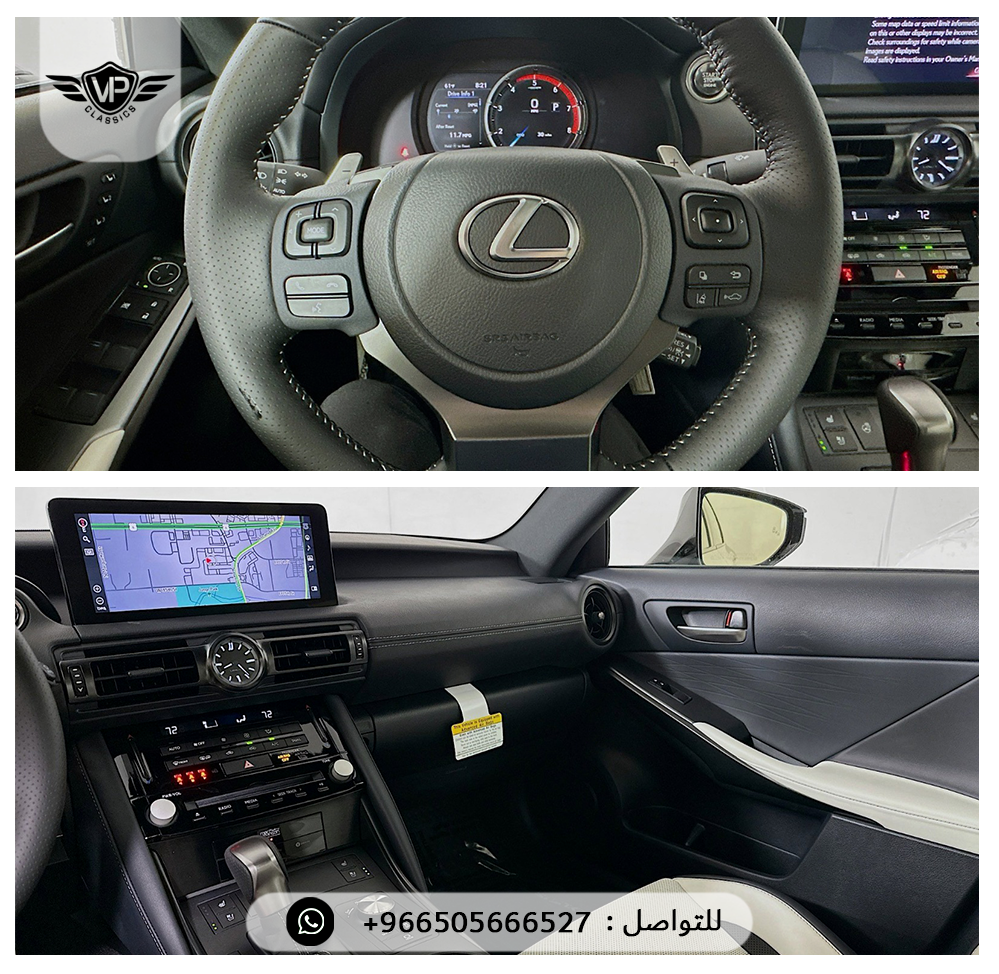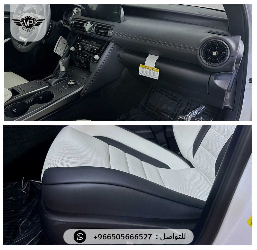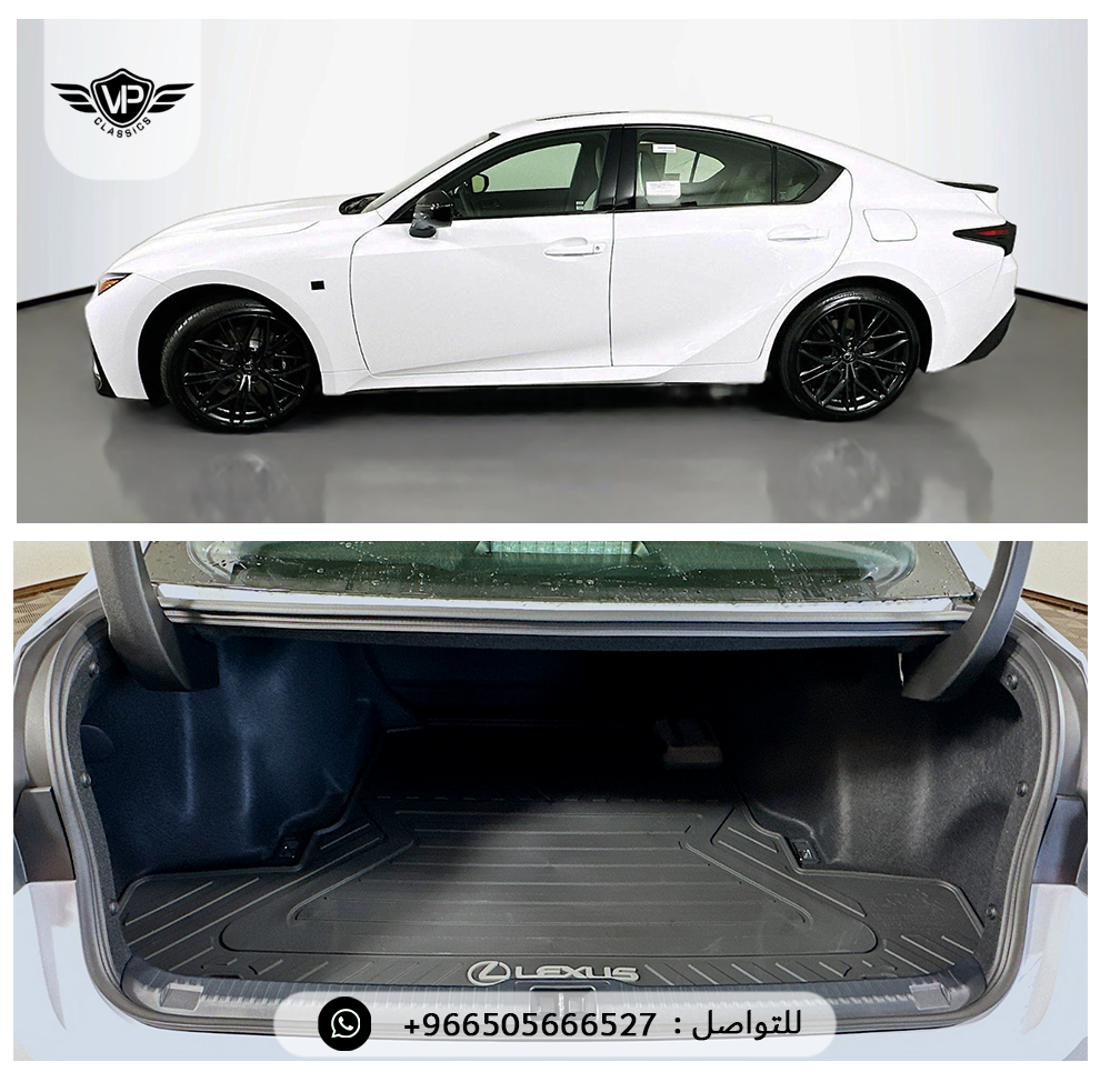 مراتب F SPORT جلد تبريد و تسخين، ذاكرة للسائق + المقود + المرايا، مقود رياضي جلد مدفأ مع بادل شيفتر، شاشة لمس 10.3 إنش مع ملاحة، نظام صوت Mark Levinson فاخر 17 سماعة /، فتحة سقف كهربائية، كاميرات 360 درجة + حساسات أمامية وخلفية مع فرملة أوتوماتيكية، مراقبة النقاط العمياء + تنبيه حركة خلفية مع فرملة، مثبت سرعة راداري متكيف بكامل النطاق، نظام التعليق المتكيف F SPORT، أوضاع قيادة متعددة (Eco – Normal – Sport S – Sport S+ – Custom)، عدادات رقمية مع G-Force Display، جنوط Enkei مقاس 19 إنش بتصميم رياضي، إنارة أمامية Triple Beam LED وخلفية LED، ستارة خلفية كهربائية، شاحن لاسلكي + منافذ USB، بلوتوث + Apple CarPlay + Android Auto، إضاءة محيطية داخلية، وسائد هوائية أمامية وجانبية وستائرية كاملة، نظام مراقبة ضغط الإطارات، نظام دخول وتشغيل ذكي، عادم رياضي رباعي (Quad Exhaust)، فرش أرضية وشنطة All Weather، طبقة حماية السيراميك Lexus Top Coat ✅
